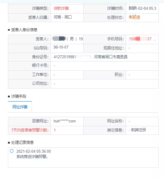 2月4日、5日,鹿邑縣公安局推廣的反詐神器“金鐘罩”陸續(xù)發(fā)出預警,該縣楊湖口的宋某、辛集的蘇某等疑似被電信詐騙。該縣公安局反詐中心民警迅速通知轄區(qū)民警,根據(jù)平臺預警信息,轄區(qū)民警快速找到了當事人,經(jīng)過耐心詳細的解釋,及時阻止了3起網(wǎng)絡詐騙案件。