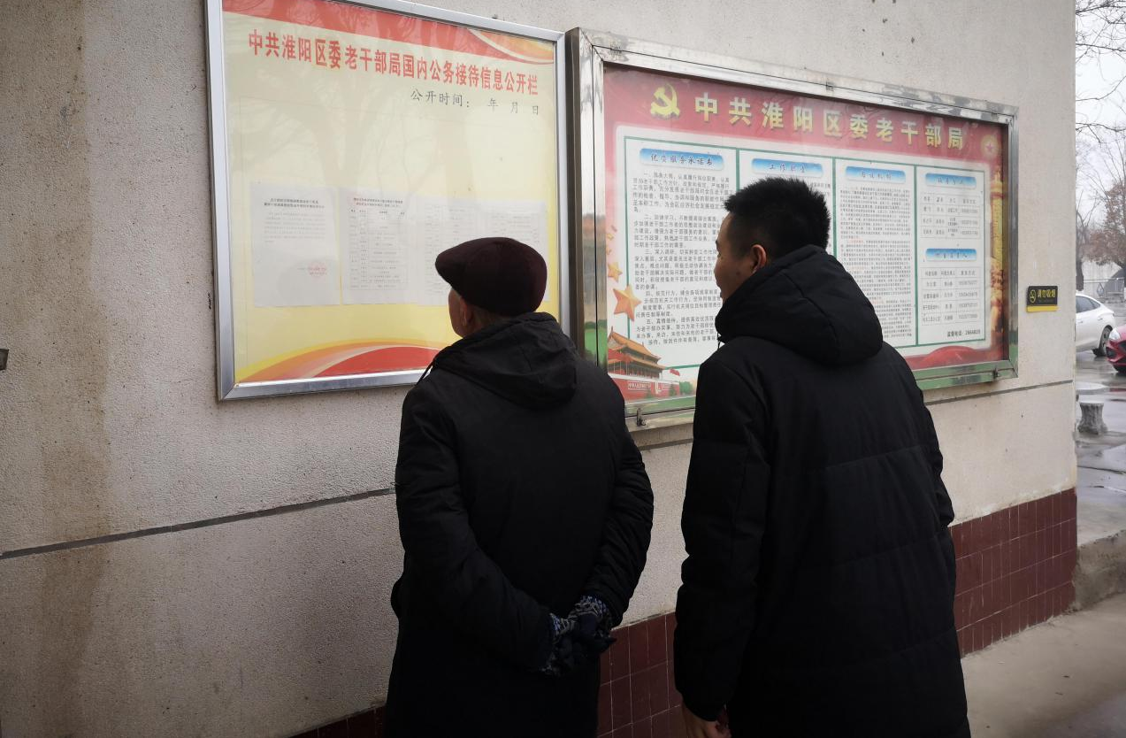 圖為淮陽區(qū)委老干部局工作人員入戶走訪,審查核實情況