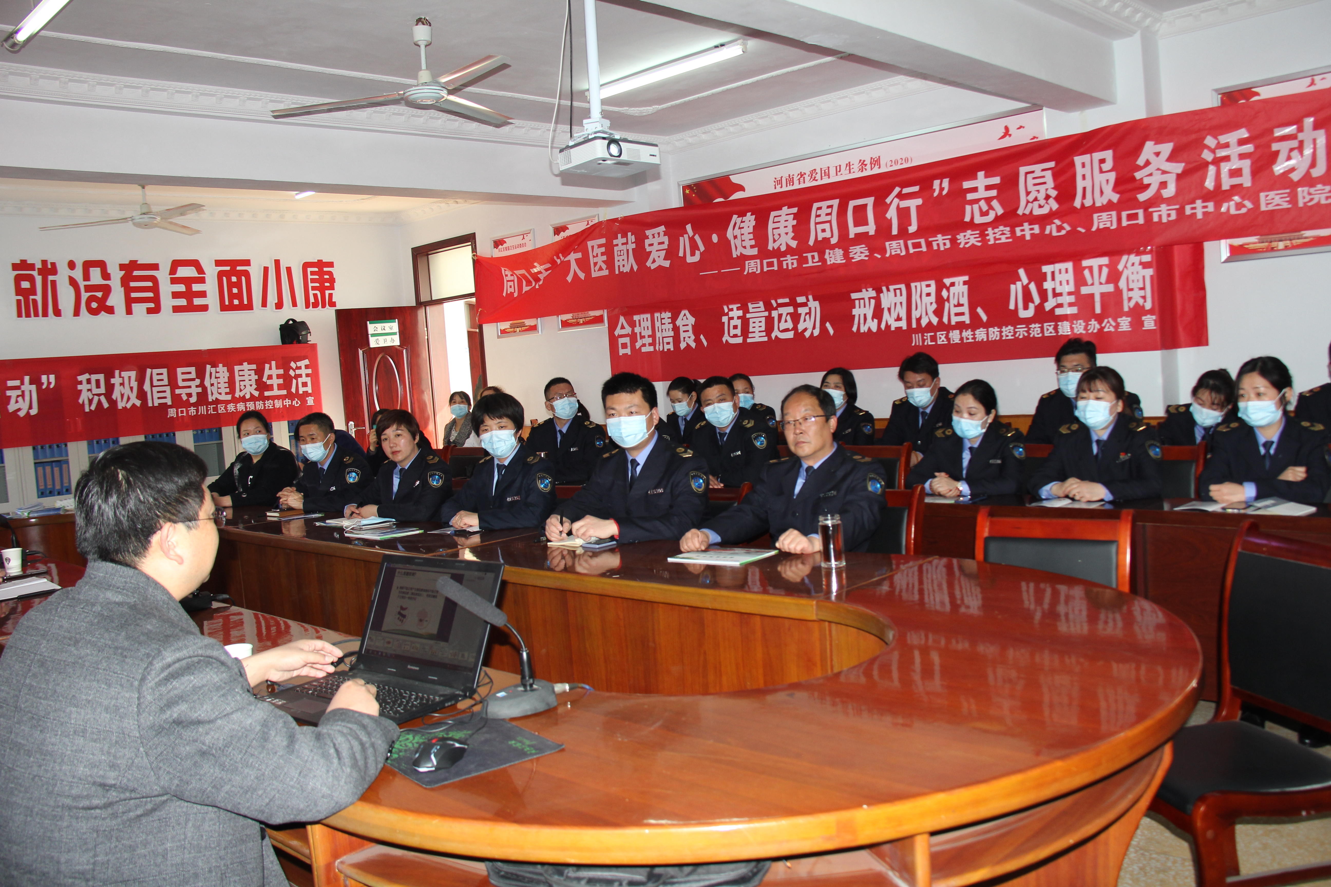 為深入開展“河南省新時代文明實踐推動周”活動,3月4日下午,由川匯區衛健委組織,市健康教育所、市中心醫院、區健康教育所、區疾病預防控制中心、區慢性病防控示范區建設辦公室、人和社區衛生服務中心等單位承辦的“新時代文明實踐推動周”“健康周口行 大醫獻愛心”健康科普活動走進川匯區衛生計生監督所。講座邀請周口市中心醫院內分泌專家楊東輝為川匯區衛生計生監督所干部職工送上“糖尿病如何科學防治”健康科普知識講座。
