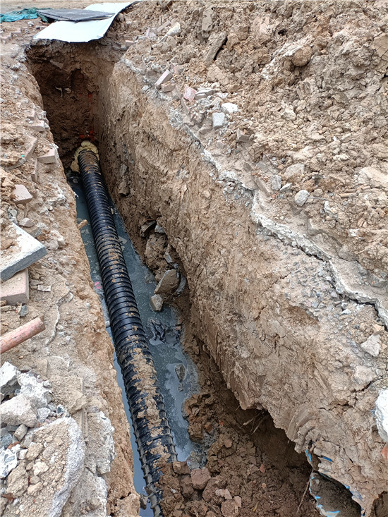 居住在維也納小區的幾位居民分析說,維也納大門前邊的污水有可能是對面施工堵塞下水道后造成污水溢出造成的。記者又來到維也納小區對面的馨蓮茗苑小區門前,那里路面沒有積水,正在進行的市政工程施工工地也沒有看到有大量污水流淌,在馨蓮茗苑大門東邊不遠處有一條挖開的管道溝槽,溝槽的底部有少量污水。剛下班的一名工人師傅說,現在他們正在修建新的下水道,管道建好還得一段時間,舊的排水管道還在使用,至于路南邊的污水與正在施工的工程有沒有聯系,他們也說不清楚。