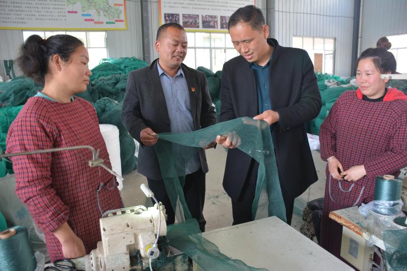 3月27日,商水縣平店鄉(xiāng)李崗村“商水縣龍巢網(wǎng)業(yè)公司”經(jīng)理羅國昌向村黨支部書記李金棋(左二)介紹漁網(wǎng)編織產(chǎn)業(yè)產(chǎn)銷帶貧情況。羅國昌和妻子劉清華2009年創(chuàng)辦漁網(wǎng)編織加工廠、2017年擴(kuò)建新區(qū),現(xiàn)有3個大型生產(chǎn)車間庫房,發(fā)展30多個分廠、40多個聯(lián)系點(diǎn),年產(chǎn)各種成品漁網(wǎng)500萬條,產(chǎn)品銷往國內(nèi)江蘇、安微、山東、河北、湖北等10多個省區(qū)和30多個沿海縣市水產(chǎn)公司,部分出口到俄羅斯及東南亞地區(qū),年創(chuàng)產(chǎn)值約1.6億元,精準(zhǔn)幫扶225戶群眾脫貧,帶貧群眾有1萬余人。