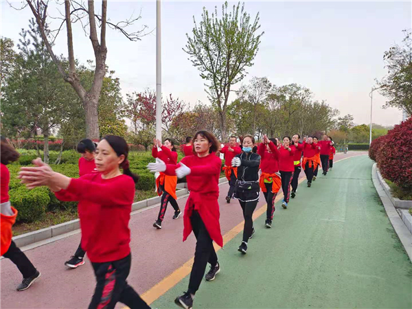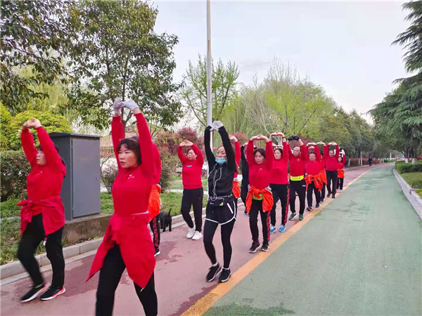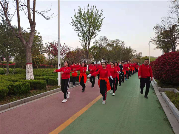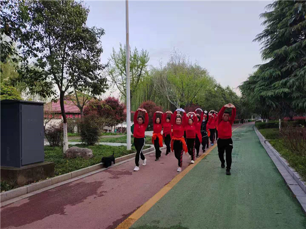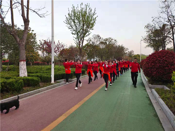 “一!二!三!四!”4月4日清晨,周口公園內一支健步走愛好者身著紅色衛衣,在潦亮的口號聲中,邁著嬌健的步伐,在鮮花綠葉中行進,撒下一路青春的氣息。②7