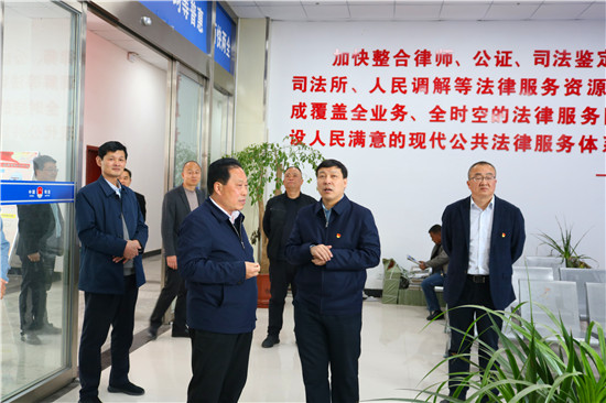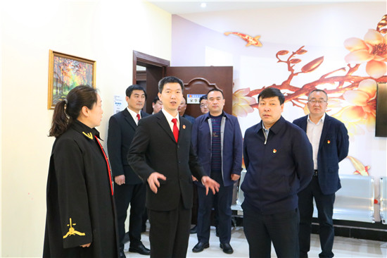 郭俊濤先后到縣人民法院,縣人民檢察院,縣司法局、縣公安局等地,與政法干警親切交流,現(xiàn)場聽取情況匯報,查閱臺賬資料,查看各單位學(xué)習(xí)教育安排、了解思想認識和教育整頓工作開展情況。郭俊濤強調(diào),庭前調(diào)解、立案等部門是縣法院聯(lián)系人民群眾的紐帶和橋梁,要合理安排學(xué)習(xí)時間,做到執(zhí)法辦案和教育整頓兩不誤、兩促進。要壓實責(zé)任,下大力氣解決“執(zhí)行難”等影響群眾滿意度的頑瘴痼疾,努力打通法院司法為民服務(wù)“最后一公里”。縣鄉(xiāng)兩級司法部門作為司法行政機關(guān)服務(wù)基層的前沿陣地,要主動配合縣委、縣政府抓好矛盾化解和普法工作,把問題消化在基層、把矛盾解決在萌芽狀態(tài)。要創(chuàng)新普法宣傳形式,讓普通群眾都能做到知法、學(xué)法、懂法、守法、護法。
