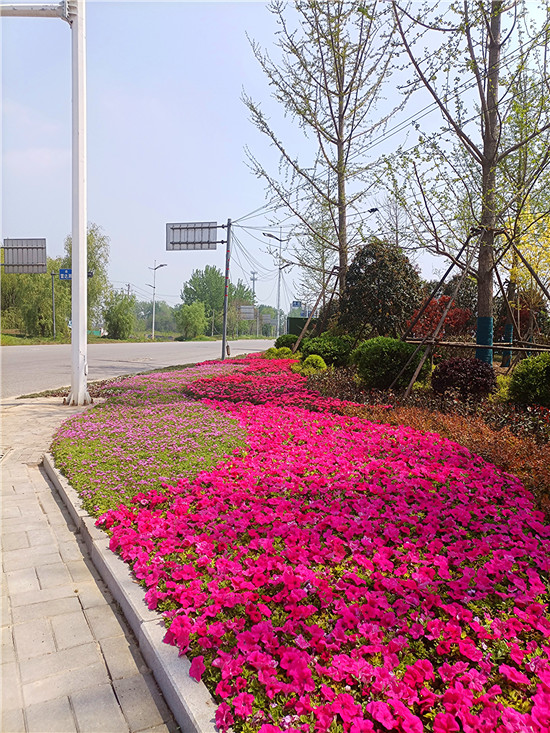 春時花事道不盡,千姿百態競嬌妍。近日,隨著天氣漸暖,我市各色花卉相繼綻放,在周口大道與建設大道交叉口一處綠化帶內,色彩繽紛的花卉編織成一條花的長廊,令人眼前一亮。
