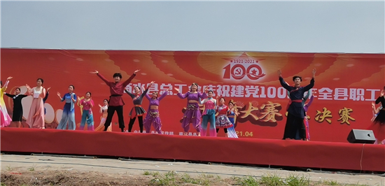 為隆重慶祝建黨100周年和喜迎五一國際勞動節,近日,由中共商水縣委宣傳部、商水縣總工會主辦的商水縣慶祝建黨100周年全縣職工廣場舞大賽總決賽在沙潁河南岸鄧城張灣舉行。縣委常委、宣傳部部長李本磊,縣委常委、縣政府副縣長崔巖,縣政協副主席彭發光,縣總工會主席盧紅兵和縣總工會班子領導以及各基層工會主席和廣大干部職工群眾8000多人到現場觀看比賽。