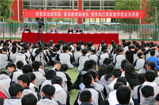 法治講座開始前,扶溝江南實驗學校校領導進行了熱情洋溢的致辭,對法院法官們的到來表示熱烈的歡迎,對法官們來校開展普法教育表示誠摯的謝意。扶溝法院黨組成員、副院長翟紅衛在講話中指出,青少年是祖國的希望,是民族的未來,愛護青少年,守護青春,關注成長,是全社會的責任,更是人民法院和法官的神圣職責和光榮使命。法院將通過堅持不懈的努力,開展好“送法進校園”活動,讓廣大青少年真切感受到司法的關愛、社會的溫暖,遠離違法犯罪,健康快樂成長。