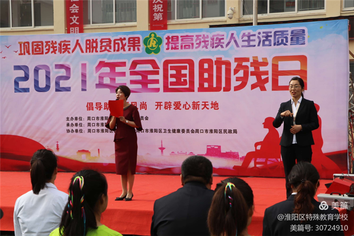 在全國助殘日來臨之際,為了進一步增進社會各界對該校的了解和認可,展示學校一年來的教育教學成果,貫徹執行國家對殘疾人的教育和幫扶政策,回饋社會各界對殘疾學生的關心和愛護,弘揚社會傳統美德,淮陽區特殊教育學校舉行了助殘日活動。