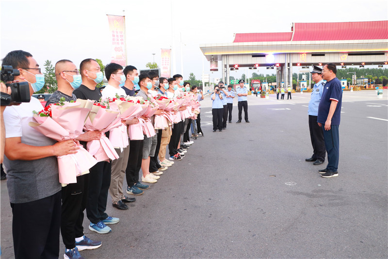 萬里抓捕凱旋歸,亮劍懲惡揚(yáng)警威。5月29日,周口市公安局城鄉(xiāng)一體化示范區(qū)分局在大廣高速周口東出站口舉行儀式,熱烈歡迎輾轉(zhuǎn)萬里偵破電信詐騙的專案組民警凱旋,經(jīng)過專案組多日晝夜奮戰(zhàn),11名涉案犯罪嫌疑人被成功押解回周口。