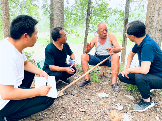 記者段九君在西華縣奉母鎮采訪該鎮黨委書記