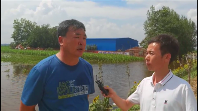 記者張猛在西華縣賈魯河閆莊大閘采訪