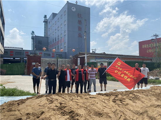 西華縣“萬人助萬企”活動辦公室副主任、縣工信局局長趙宏偉立即向縣“萬人助萬企”指揮部進行了匯報,并組織工信局防汛應急突擊隊16名隊員迅速趕往西華縣凱馨面粉廠,裝沙袋,加固糧倉,運沙土,筑牢廠區第一道防水隔離帶。防汛應急突擊隊隊員僅用2個小時的時間完成了企業的防汛要求,企業負責人十分滿意。 ③7