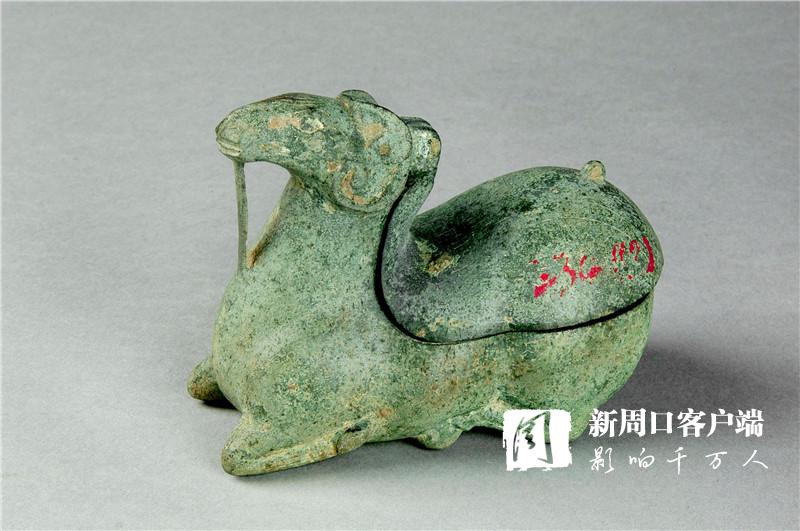 原來這件漢代臥羊銅燈白天是個精致擺件,晚上掀開器蓋,引上捻子,點上燭火,就秒變燈具。該燈分上下兩部分,羊頸下部設一活動樞紐與軀體相連結,羊背做成可翻轉至頭頂的燈盤,背部上掀可以打開,可盛油點燈,引芯可燃。燈盤放下后又與羊體吻合,余油自動流入腹腔存放。古人用油一般是植物油或動物油,用蓋子一可防止不用時油料揮發,二能防止老鼠偷喝,三能把未燃盡的油再利用。漢代臥羊銅燈整體構思精巧細致,造型新穎。一盞小小的燈都能精細到這種程度,漢代的工藝制作水平由此可見一斑。