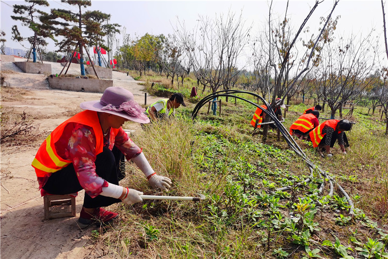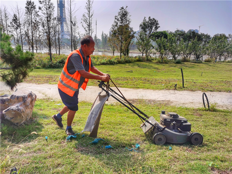 國慶節期間,在廣大人民群眾享受假期的時候,周口市城區沙潁河公園內,一群身著紅馬甲的園林綠化工人,不畏炎炎烈日,在公園綠化帶忙碌著修整綠植、草坪,用辛勤的汗水維護城市的美麗。②9