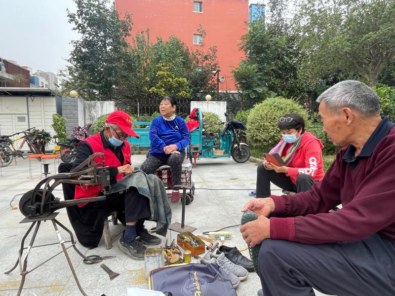志愿者為老人縫補鞋子