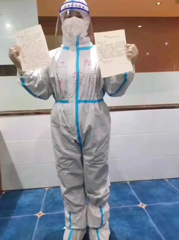2022年1月太康縣出現確診病例密切接觸者,根據防控要求,這次需要隔離的人員多為太康第三中學的學生,接到通知后的郭榮麗再次投入工作。她看到被隔離的孩子在緊張、恐懼的情緒中還在學習,她既心痛又欣慰。郭榮麗的兒子和被隔離的孩子同歲,母親了解孩子,她每天都會和這些孩子聊天,了解孩子的心理狀況,解除孩子的恐懼心理,很快孩子們就和她熟悉起來。整個隔離期間,這些孩子有心里話也會告訴郭榮麗。觀察結束后,孩子們還給她和醫護團隊寫了一封感謝信,信中說“我想看看您摘掉口罩后的樣子,我想那是天使的模樣”。