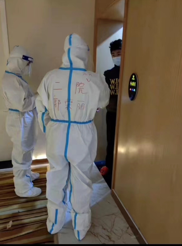 2022年3月22日太康縣出現疫情,作為一名抗疫“老人”,面對這樣的形勢郭榮麗再次投入到抗疫工作中,從3月22日深夜接到通知急需到福港隔離點接收隔離人員,到4月25日所有的隔離人員安全隔離,其間她從未離開過隔離點。