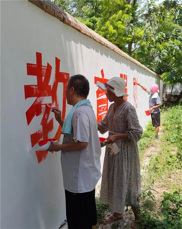 為保證以全新面貌迎接新生開學報到,8月14日,鹿邑縣鄭家集鄉中心小學特邀請該縣書畫名師工作室為學校繪制操場文化墻。