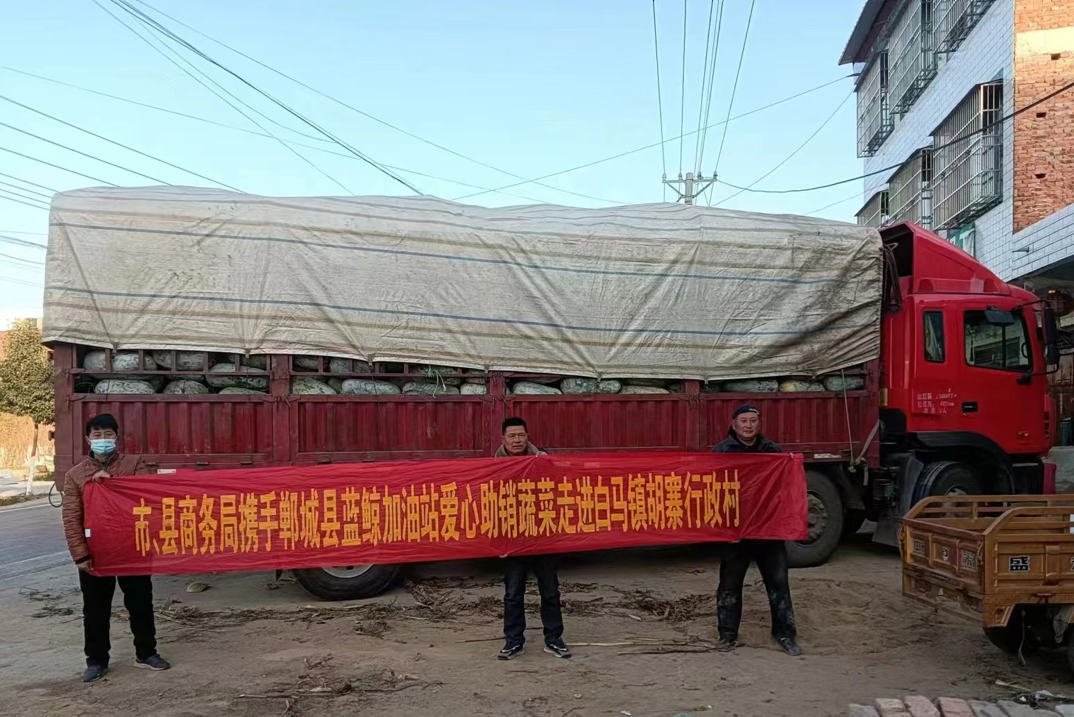 為幫助菜農解決蔬菜銷售困難,12月13日,市商務局和鄲城縣商務局攜手鄲城縣藍鯨加油站購買當地菜農10多萬斤冬瓜送到市商務局幫扶村白馬鎮胡寨行政村,送給全村村民。周口日報全媒體記者 付永奇 攝