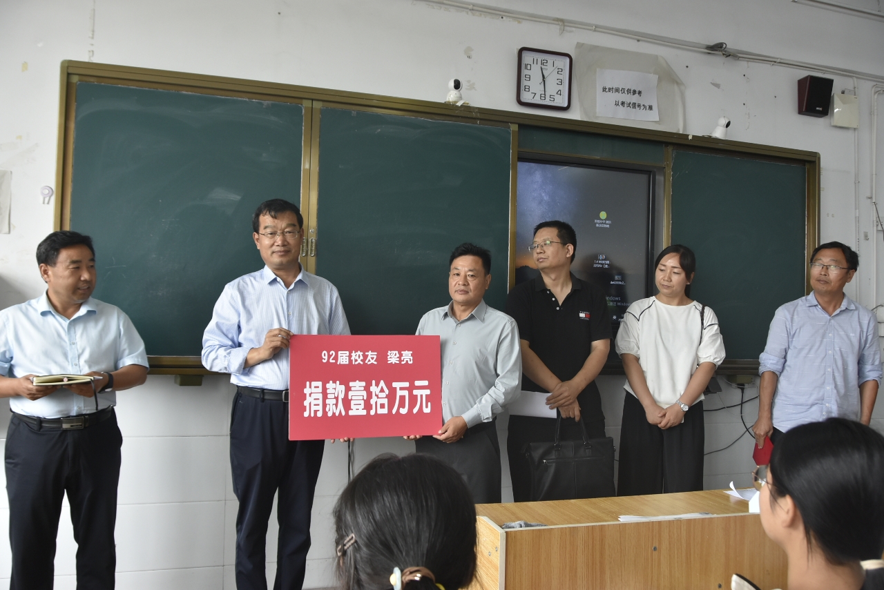 梁亮在發(fā)言中回憶了自己在母校求學(xué)時的點點滴滴,他感恩母校老師當(dāng)年的辛勤培養(yǎng),解釋了捐贈的初衷,并莊嚴(yán)承諾:只要自己的企業(yè)不倒閉,就會把這項公益事業(yè)一直做下去。他希望“大梁班”全體同學(xué)聽老師的話,做規(guī)范的事。不怕苦,不怕累,找對學(xué)習(xí)方法,合理分配時間,想法設(shè)法提高學(xué)習(xí)效率,抵制一切不良誘惑,一心用在學(xué)習(xí)上。他祝愿全體同學(xué)都能考入自己理想的大學(xué),一定會實現(xiàn)自己的夢想!