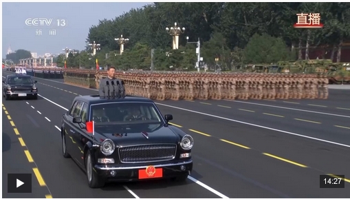 在雄壯的軍樂聲中,習近平乘車沿著寬闊的長安街,依次檢閱徒步方隊和裝備方隊。