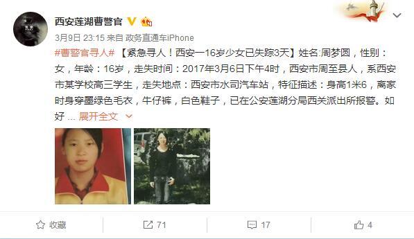 西安17歲女孩乘汽車上學(xué)失聯(lián) 家人心急如焚