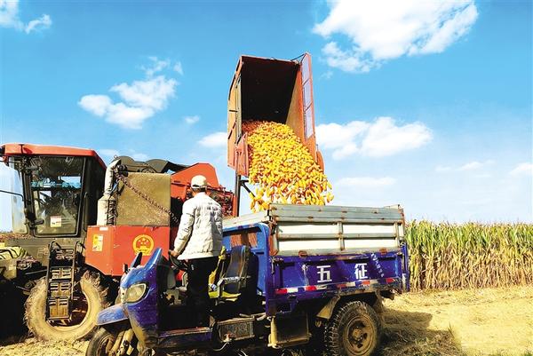 10月14日,扶溝縣大李莊鄉(xiāng)常崗村村民抓住天氣晴好的短暫時(shí)機(jī)搶收玉米。